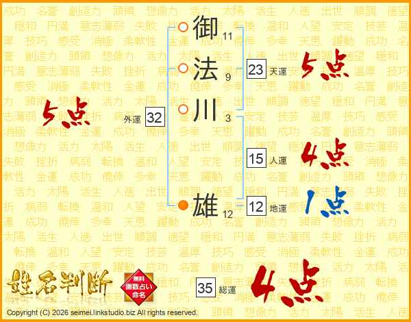 御法川雄さんの総運は35画の4点!