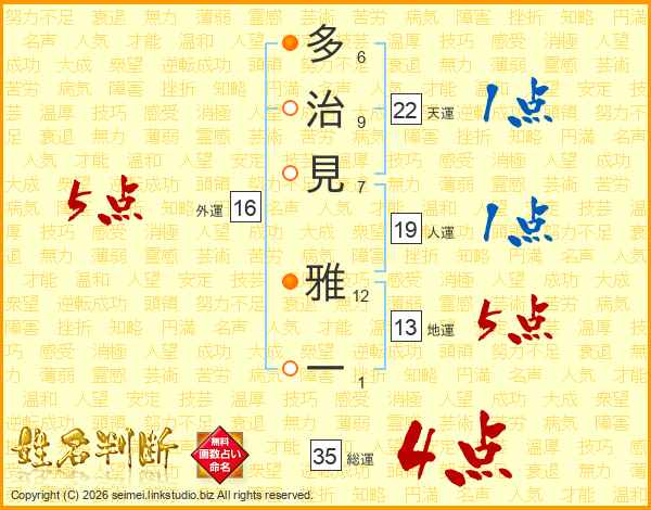 多治見雅一さんの総運は35画の4点!