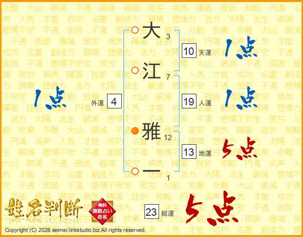 大江雅一さんの総運は23画の5点!