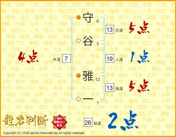 守谷雅一さんの天運は13画の5点!