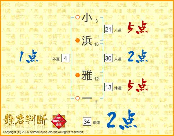 小浜雅一さんの総運は34画の2点!