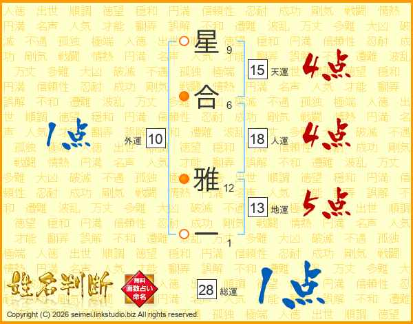 星合雅一さんの総運は28画の1点!