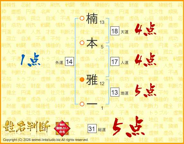 楠本雅一さんの天運は18画の4点!