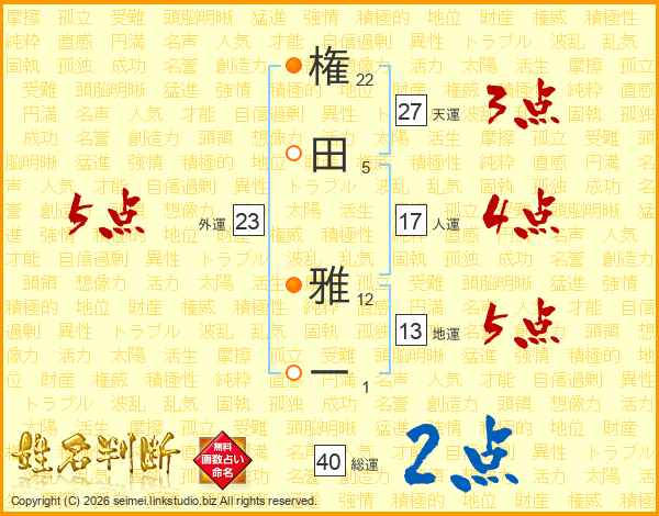 権田雅一さんの天運は27画の3点!