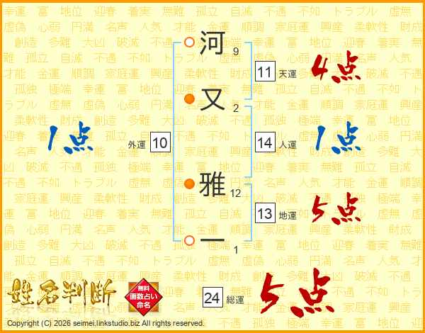 河又雅一さんの総運は24画の5点!