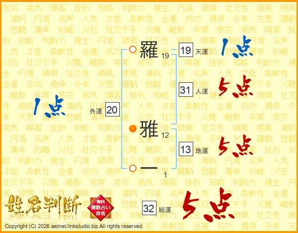 羅雅一さんの人運は31画の5点!