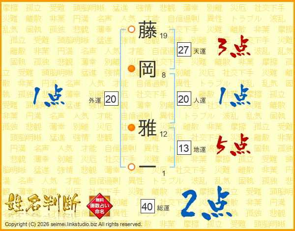 藤岡雅一さんの人運は20画の1点!