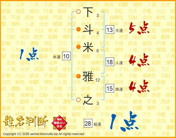下斗米雅之さんの総運は28画の1点!