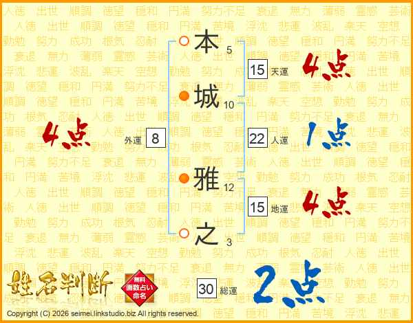 本城雅之さんの人運は22画の1点!