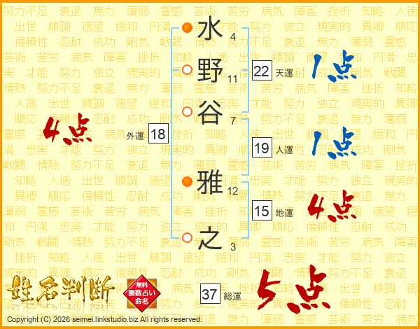 水野谷雅之さんの総運は37画の5点!