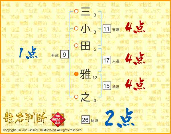 三(3画)小(3画)田(5画) 雅(12画)之(3画)
