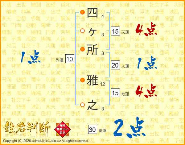 四ヶ所雅之さんの総運は30画の2点!