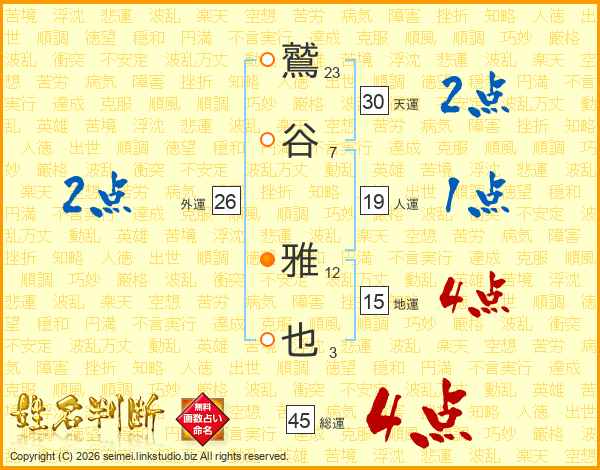 鷲谷雅也さんの総運は45画の4点!