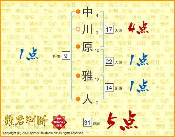 中川原雅人さんの人運は22画の1点!
