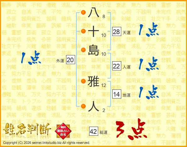 八(8画)十(10画)島(10画) 雅(12画)人(2画)