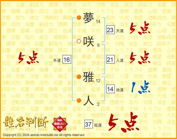 夢咲雅人さんの総運は37画の5点!