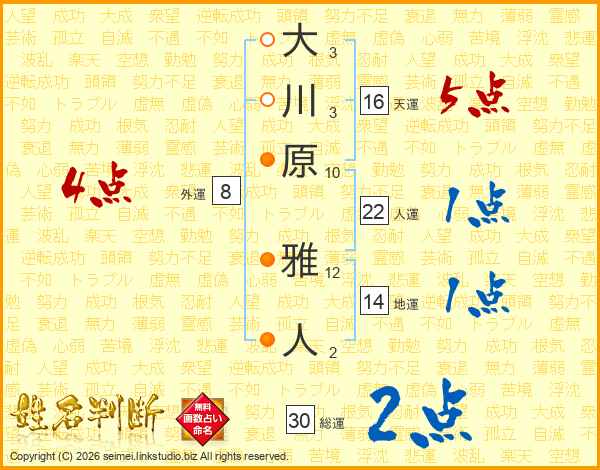 大川原雅人さんの人運は22画の1点!