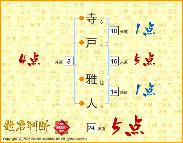 寺戸雅人さんの総運は24画の5点!