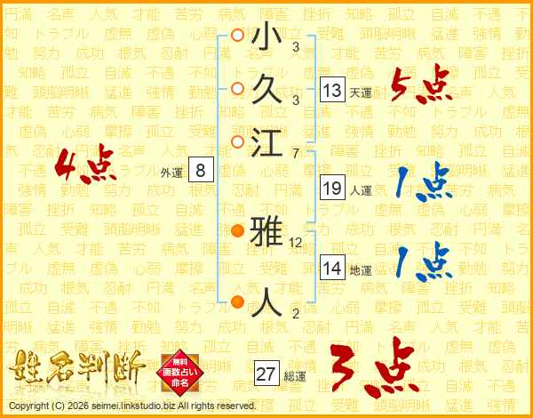 小(3画)久(3画)江(7画) 雅(12画)人(2画)