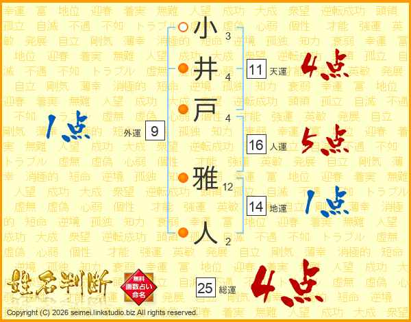 小井戸雅人さんの人運は16画の5点!