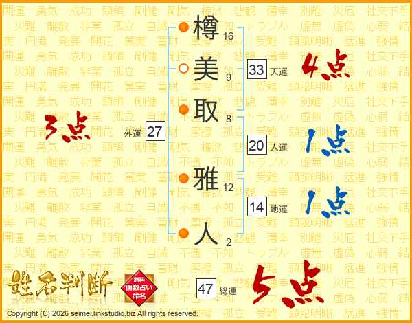 樽美取雅人さんの総運は47画の5点!
