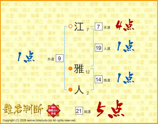 江雅人さんの総運は21画の5点!