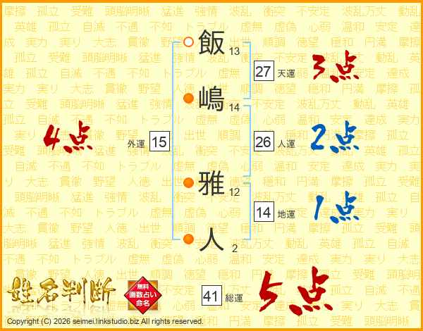 飯嶋雅人さんの総運は41画の5点!