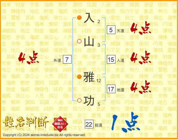 入山雅功さんの総運は22画の1点!