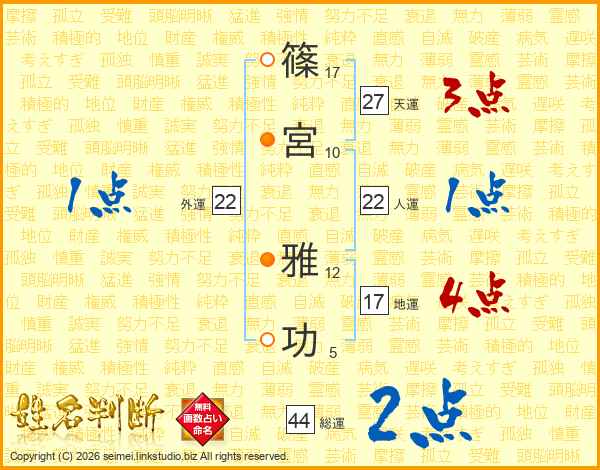 篠(17画)宮(10画) 雅(12画)功(5画)