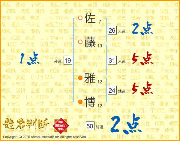佐(7画)藤(19画) 雅(12画)博(12画)