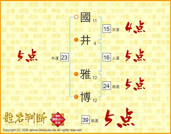 國(11画)井(4画) 雅(12画)博(12画)