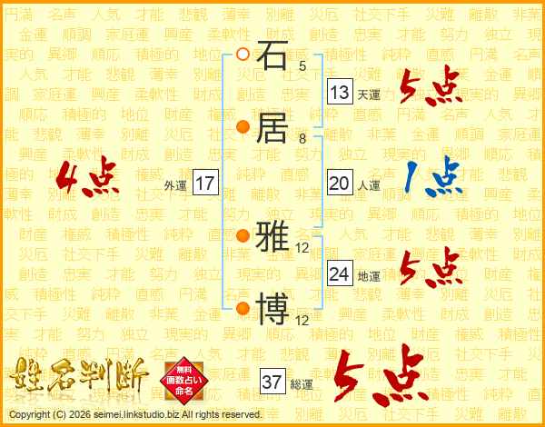 石居雅博さんの総運は37画の5点!
