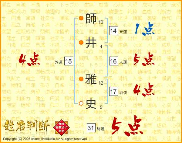 師井雅史さんの総運は31画の5点!
