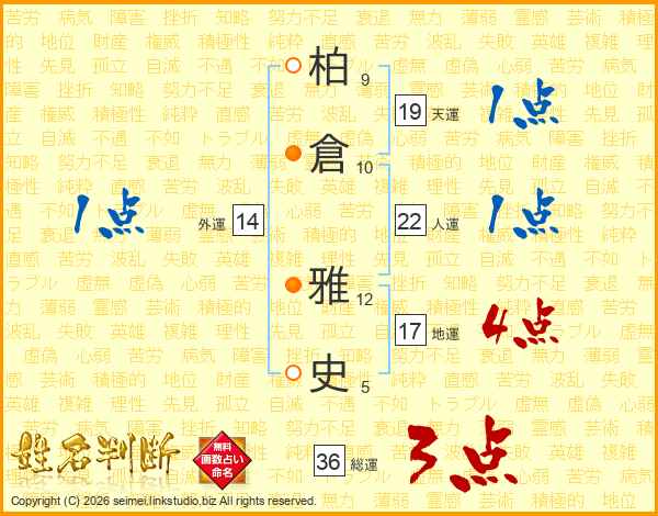 柏(9画)倉(10画) 雅(12画)史(5画)