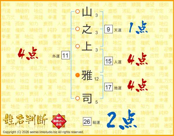 山之上雅司さんの総運は26画の2点!