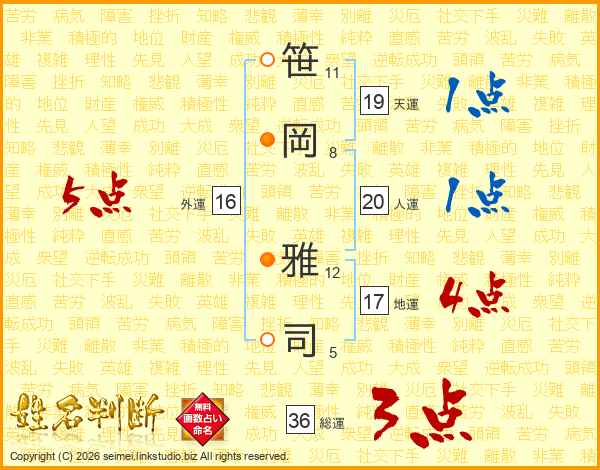 笹岡雅司さんの総運は36画の3点!