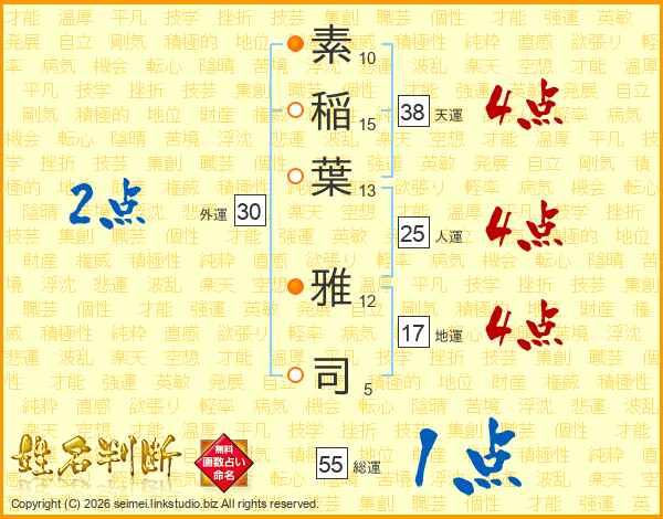 素稲葉雅司さんの総運は55画の1点!