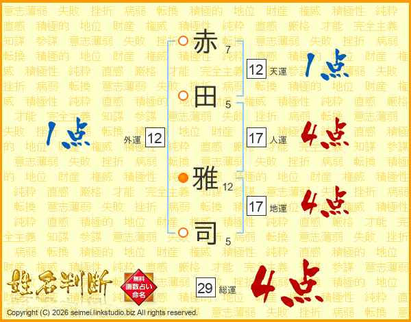 赤田雅司さんの人運は17画の4点!