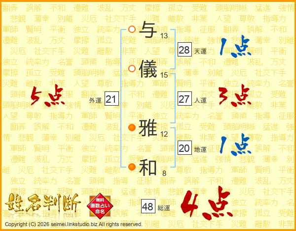 与儀雅和さんの総運は48画の4点!