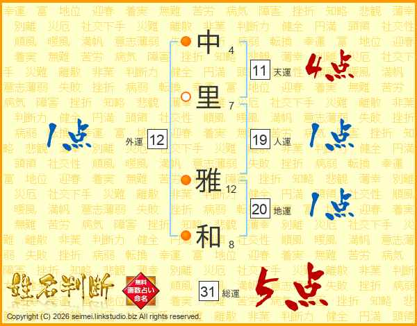 中里雅和さんの天運は11画の4点!