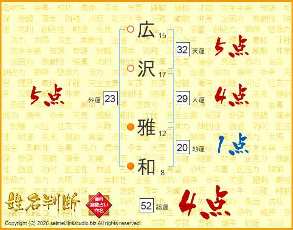 企画力 独創性 強運 功利 創造性 財運 先見 健命 勇猛