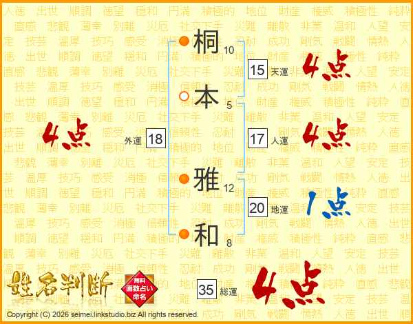桐本雅和さんの総運は35画の4点!