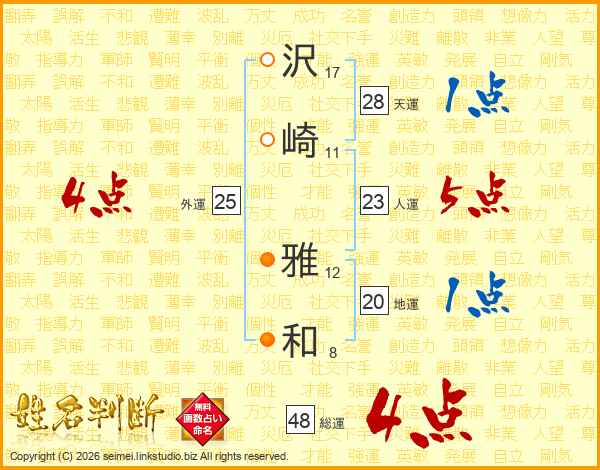 沢崎雅和さんの総運は48画の4点!