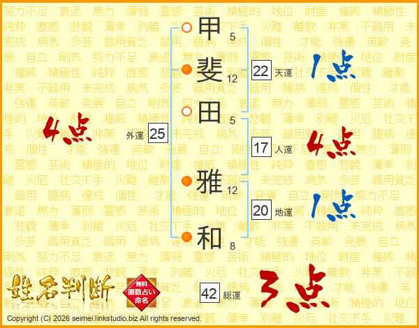 甲(5画)斐(12画)田(5画) 雅(12画)和(8画)