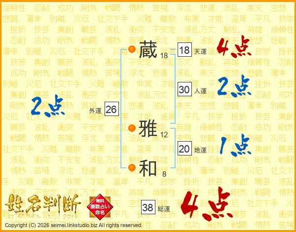 蔵雅和さんの総運は38画の4点!
