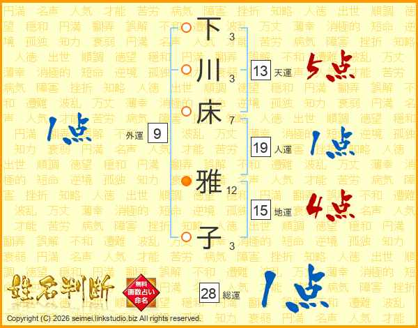 下川床雅子さんの天運は13画の5点!