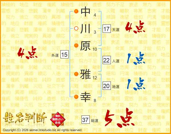 中川原雅幸さんの天運は17画の4点!