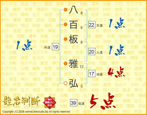 八(8画)百(6画)板(8画) 雅(12画)弘(5画)