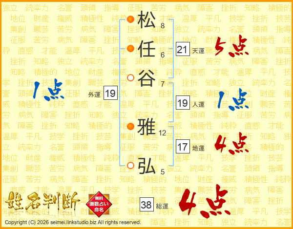 松任谷雅弘さんの総運は38画の4点!