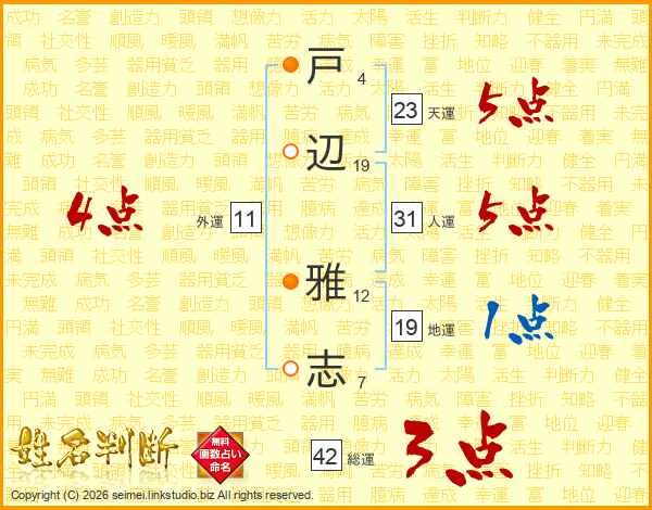 戸(4画)辺(19画) 雅(12画)志(7画)
